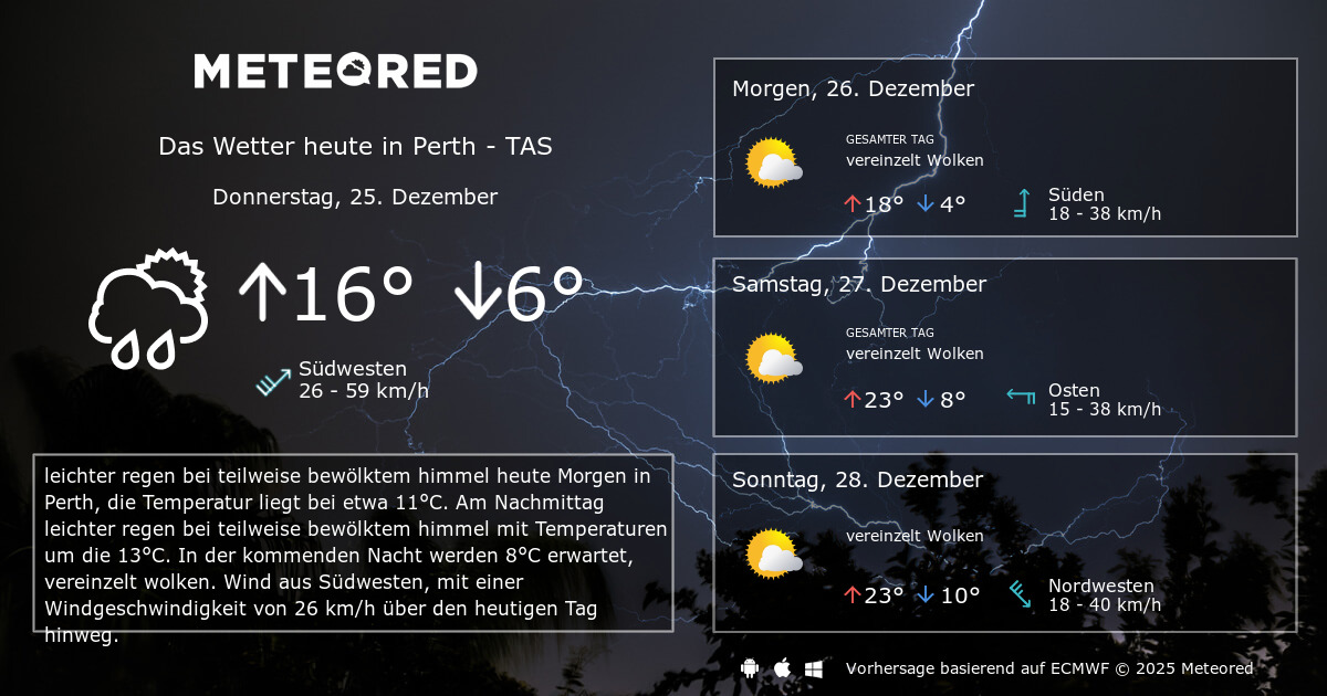 Very high (95%) chance of showers, most likely in the morning and. Das wetter in perth 17.04.2021. Der donnerstag bringt freundliches wetter mit viel sonnenschein. Vorhersage für die region perth. Die höchstwerte betragen 9 grad, die.